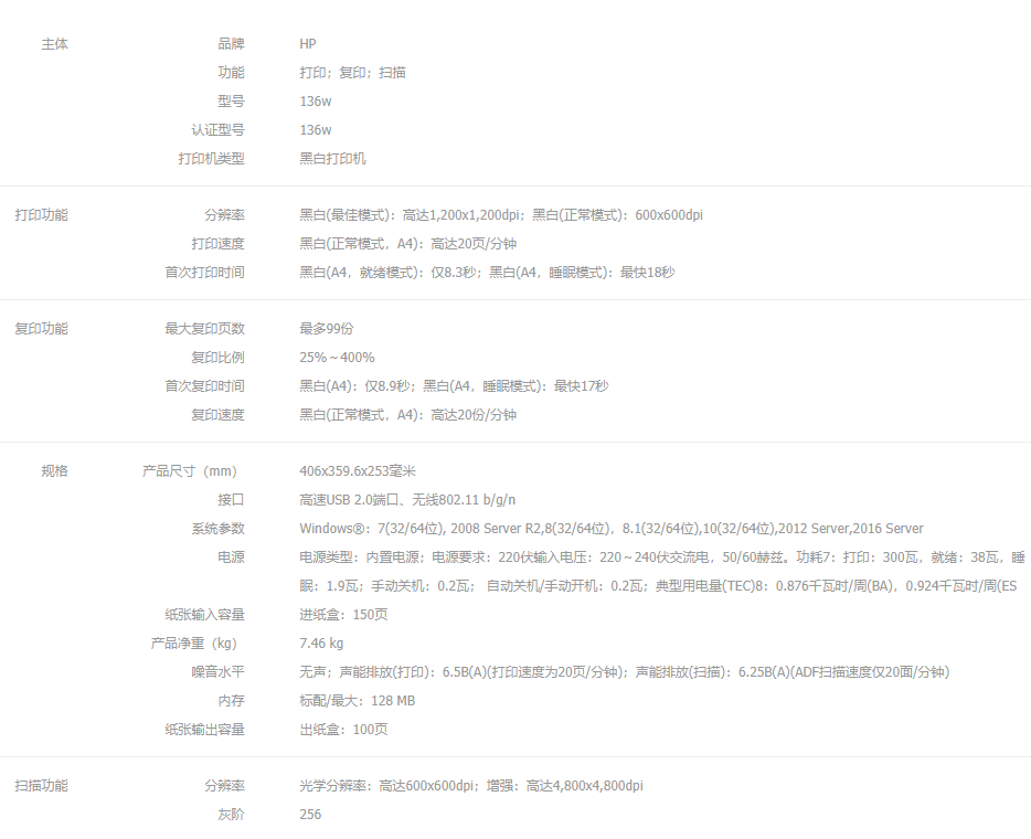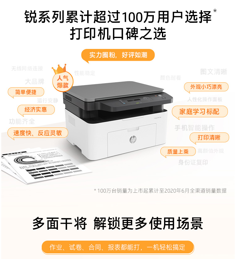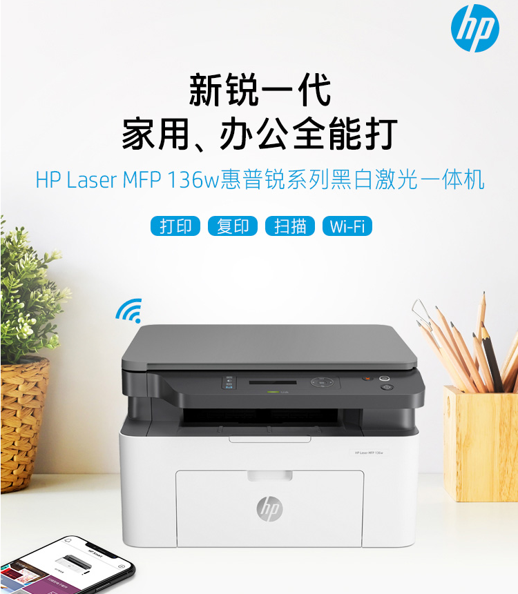 惠普 (HP) 136w 锐系列黑白激光多功能一体机