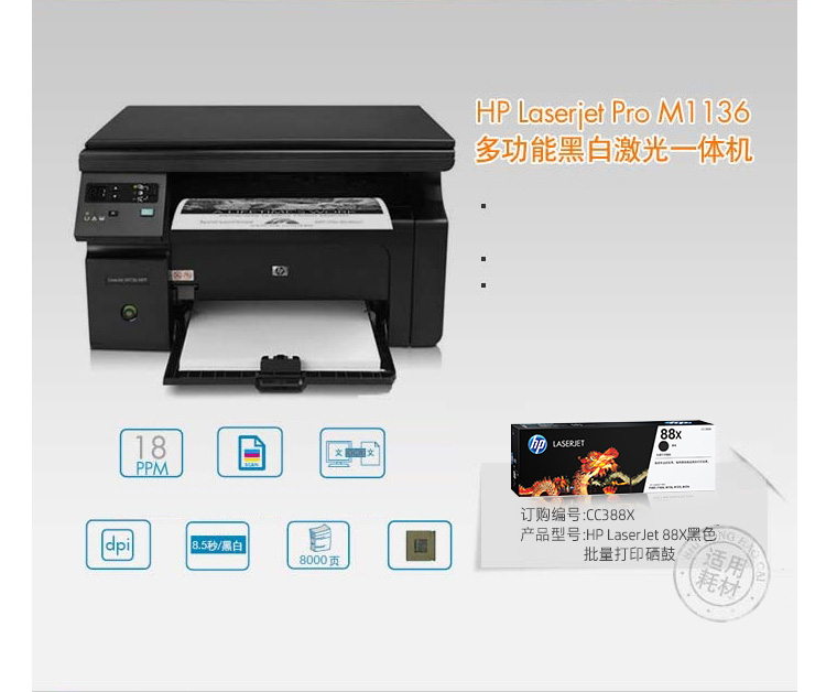 耗材类型  :   一体式硒鼓
